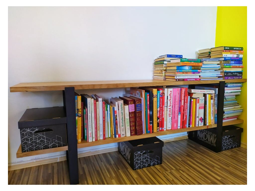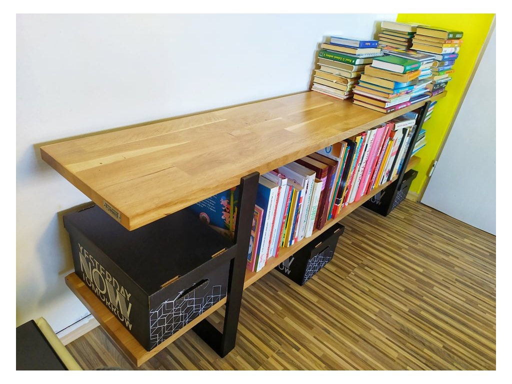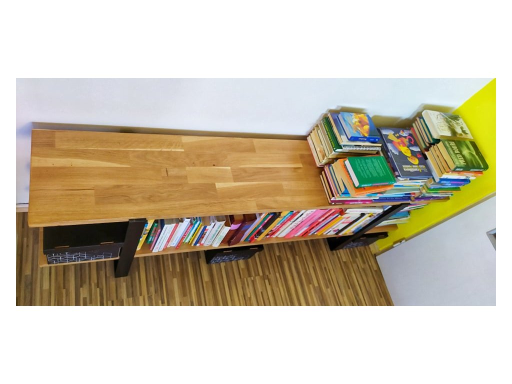 Knihovna Mindset dub masiv a plocha ocel 160x30x 60x 59 cm